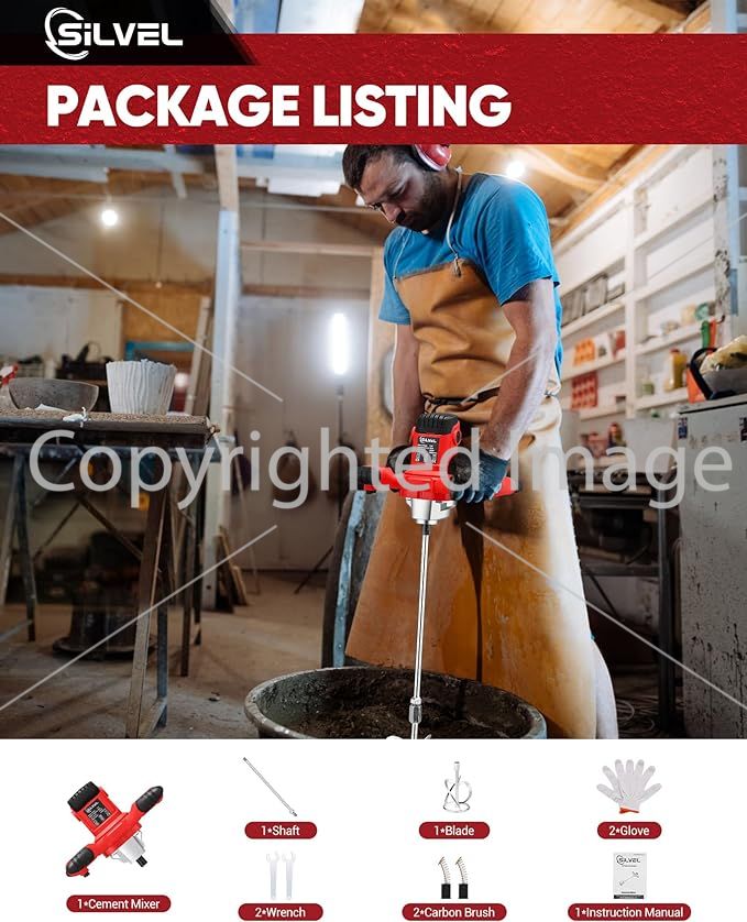 Equipped with convenient handles, this mixer is easy to carry and move around. It also has built-in protection systems against overheating and overloading, extending its lifespan and preventing breakage. The SILVEL Cement Mixer is a great tool for professional builders and DIY enthusiasts. It helps to make complex construction tasks, such as pouring foundations and installing tiles, easier.